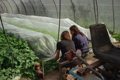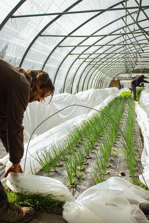 Nous sommes Dimitri et Jeanne, un couple de maraîchers bio installés à Moëlan-sur-mer (29) depuis octobre 2025.